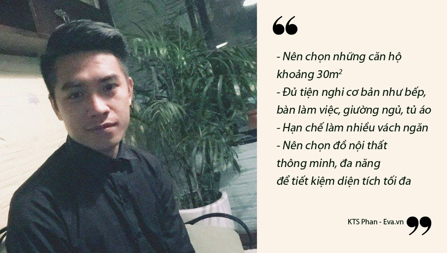Nên chọn căn hộ khoảng 30m2, kết hợp các phòng, hạn chế làm vách ngăn